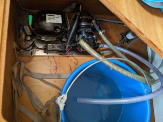 After about 10 days in Moorea we returned to Tahiti to provision and do some boat maintenance – including servicing the main engine to keep it under warranty, fixing a generator exhaust hose leak and replacing our refrigerator sea water pump. We also spent considerable effort devising a gravity feed propane tank fill system so we could refill our propane more easily when we are in the remote Tuamotos islands. We have been finding it very hard to fill our ‘blue bottle’ camping gas tanks here in French Polynesia and it was time to take matters into our own hands.